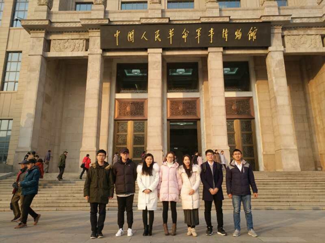 参观结束之后,同学们恋恋不舍的在博物馆前合影留念。作为一名共青团员,同样是兵器专业的硕士研究生,参观完革命前辈赢得战争所用的武器装备,我们的内心充满敬佩,但同时也深深体会到,在新时期下,我们所担负的历史重任。生于和平年代,硝烟早已散尽,但只有积极投身国防建设,提升我国实力,才能巩固世界和平的局面。所以,我们将勇担使命,砥砺前行,认真学习习近平总书记讲话,认真学好专业知识,做一名合格共青团员,携起手来用我们的青春和汗水为祖国社会主义宏伟蓝图增光添彩!