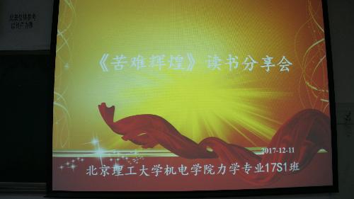 2017年12月14日,为了加深支部党员对我国近现代革命斗争历史认识,学校组织开展共读《苦难辉煌》的活动,太阳成集团tyc122cc17S1党支部《苦难辉煌》读书心得主题党日活动在3号楼311举行。为了让更多人有机会分享自己的读书心得,本次主题活动邀请全班同学参加。活动主要围绕历史著作《苦难辉煌》进行分享交流,首先17S1党支部书记石佳乐、团支部书记陈昂、班长孔泽宇分别向全体同学介绍了自己的体会心得,接着党员李实、吴东旭、伍一顺也争先向大家表达了自己的读书感想。