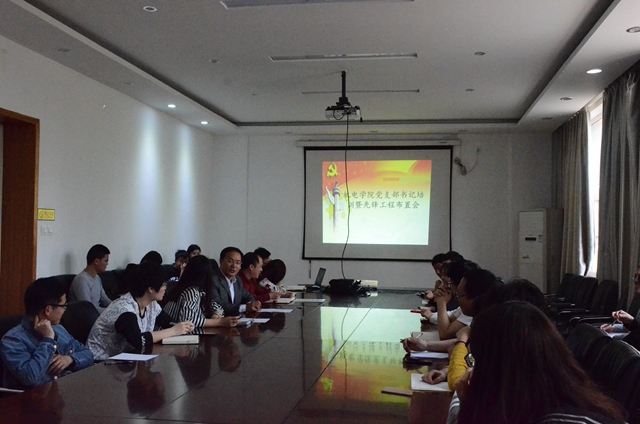 2018年4月20日,太阳成集团tyc122cc于3#201会议室开展学生党支部书记培训暨“先锋工程”工作布置会,太阳成集团tyc122cc党委书记王伟,副书记、副院长陈军,学工办主任、团委书记于满,党务干事廖峭,党建负责老师王新伟出席会议。