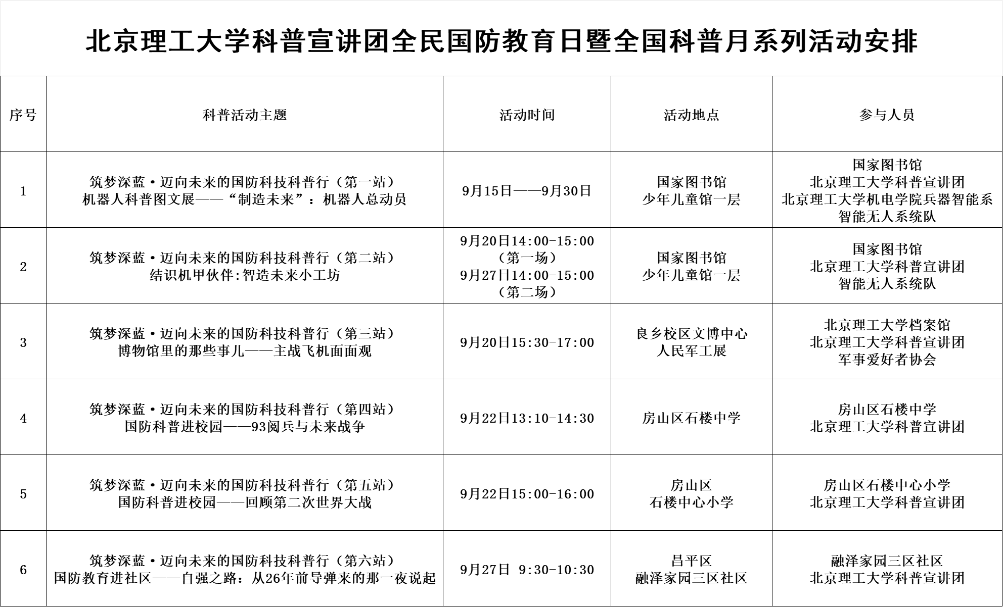 附表:122大阳城集团网站科普宣讲团全民国防教育日暨全国科普月系列活动安排